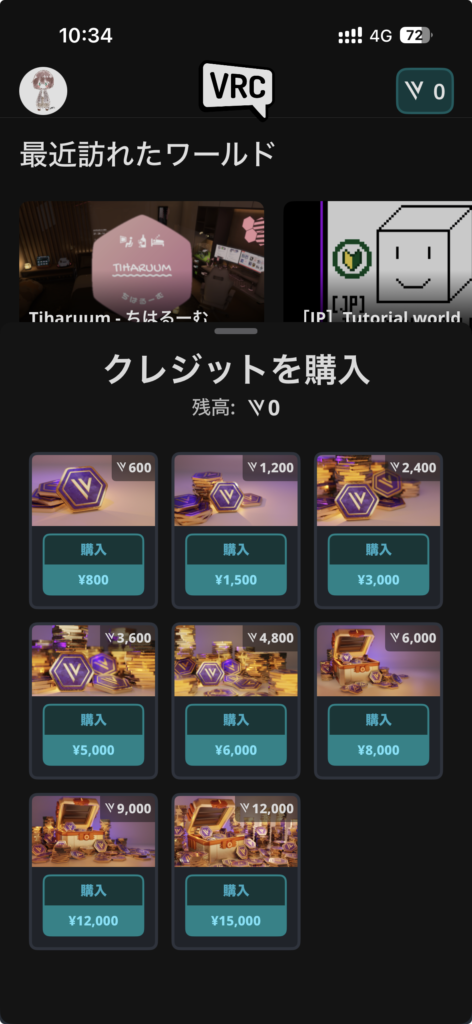 クリエイターサポートを行うためのVRChat Creditsの購入がAndroidでも可能になりました。